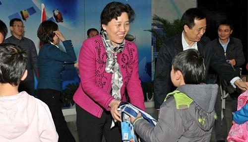 費(fèi)俊龍將軍與各位領(lǐng)導(dǎo)一起為孩子們送上學(xué)習(xí)用品
