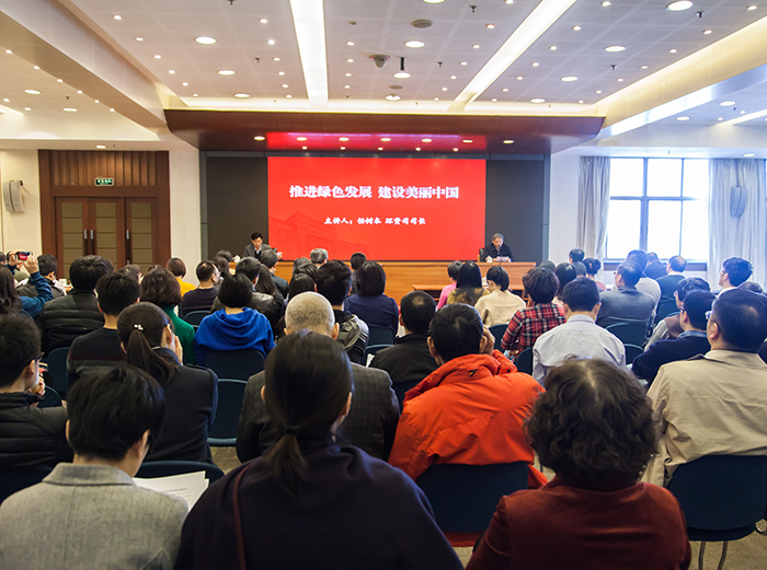 為進一步學習貫徹黨的十九大精神,深刻領(lǐng)會習近平總書記關(guān)于生態(tài)文明建設的系列講話精神,指導公司更好地開展相關(guān)工作,3月15日上午,公司邀請國家發(fā)展和改革委員會資源節(jié)約和環(huán)境保護司司長任樹本,以《推進綠色發(fā)展 建設美麗中國》為題作專題講座。公司領(lǐng)導、資深專家,公司各部門和所屬企業(yè)職工170余人參加。公司黨委副書記、副總經(jīng)理楊東民主持講座。 國家發(fā)改委環(huán)資司司長任樹本做講座 任司長系統(tǒng)講授了習近平總書記關(guān)于生態(tài)文明建設的重要思想,指導大家深刻理解黨的十九大提出的我國生態(tài)文明建設新目標,分析了我國生態(tài)文明建設工作的有力條件和面臨挑戰(zhàn),并明確指出環(huán)資司將以“堅決打好污染防治攻堅戰(zhàn)、推動形成綠色發(fā)展新動能、廣泛推行綠色生活方式、構(gòu)建綠色空間開發(fā)保護格局、著力提高資源產(chǎn)出效率、深入推進體制改革和法治建設、積極參與全球環(huán)境治理”為重點抓手,推動形成人與自然和諧發(fā)展現(xiàn)代化建設新格局。 講座現(xiàn)場 楊東民副總經(jīng)理要求廣大干部職工結(jié)合工作實際,認真學習領(lǐng)會講座內(nèi)容,在提供咨詢服務的過程中自覺貫徹落實習近平總書記關(guān)于生態(tài)文明建設的重要思想,努力提高咨詢服務質(zhì)量,為滿足新時代提出的新要求,繼續(xù)真抓實干,為國家富強做出更大貢獻。  | |||||