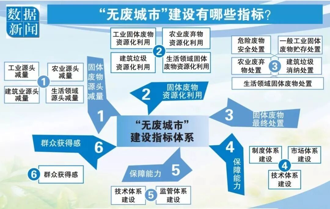 “無廢城市”是貫徹習近平生態(tài)文明思想,立足于創(chuàng)新、協(xié)調、綠色、開放、共享的五大發(fā)展理念,致力于打造綠色生產生活方式,實現(xiàn)安全處置固體廢棄物,降低其對生態(tài)環(huán)境的影響,并進行源頭減量和資源化利用的一種城市發(fā)展方式。2018年國務院辦公廳印發(fā)了《“無廢城市”建設試點工作方案》(國辦發(fā)〔2018〕128號),提出“無廢城市”建設理念,“探索建立‘無廢城市’建設綜合管理制度和技術體系,大宗工業(yè)固體廢物貯存處置總量增長趨零,主要農業(yè)廢棄物全量利用,生活垃圾減量化,資源化水平全面提升,危險廢棄物全面安全管控……,培育一批固體廢物資源化利用骨干企業(yè)。”要在全國范圍內選擇有條件、有基礎、規(guī)模適當?shù)某鞘虚_展試點工作。