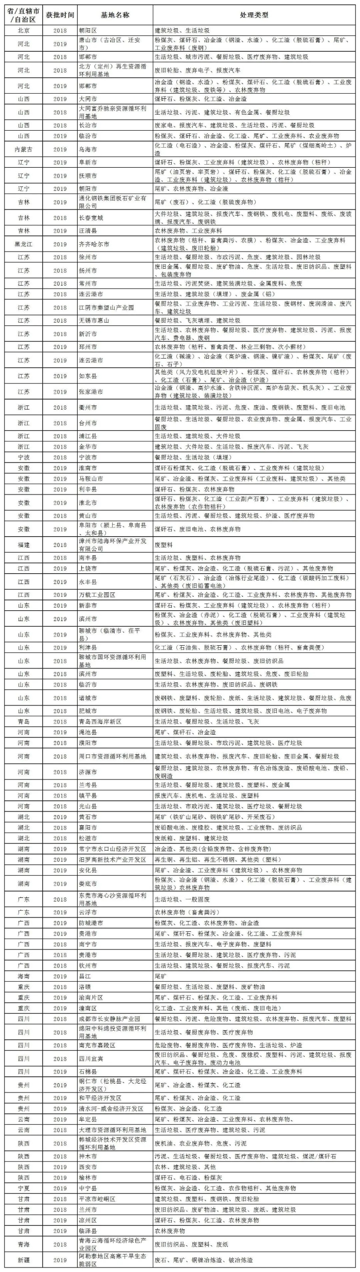 注:2018年獲批為資源循環(huán)利用基地,2019獲批為大宗固體廢棄物綜合利用基地。
