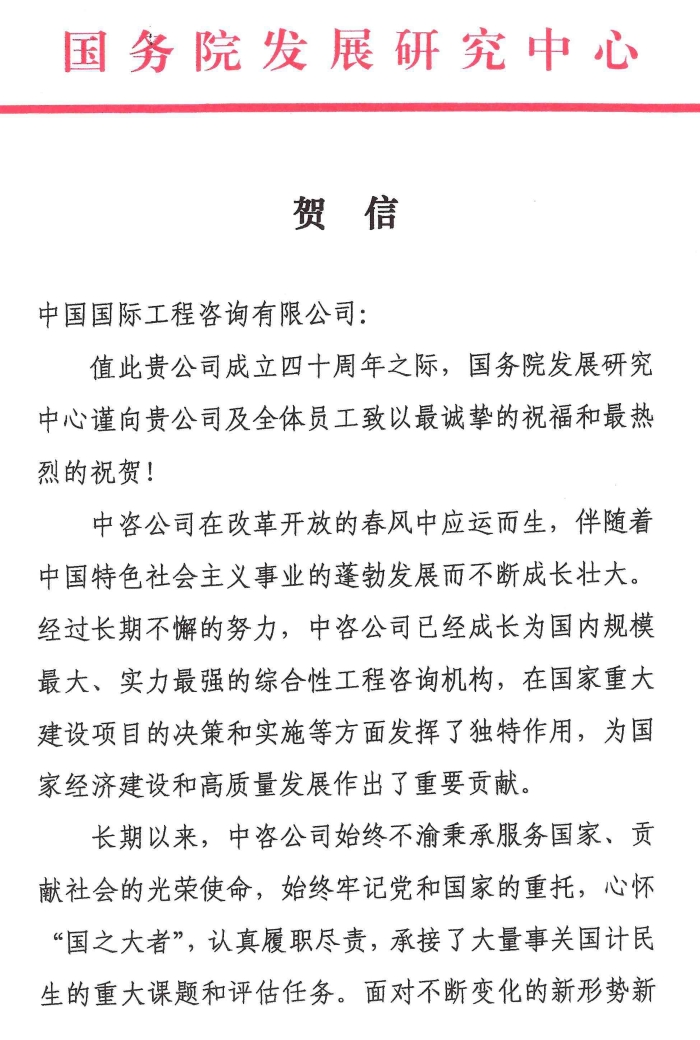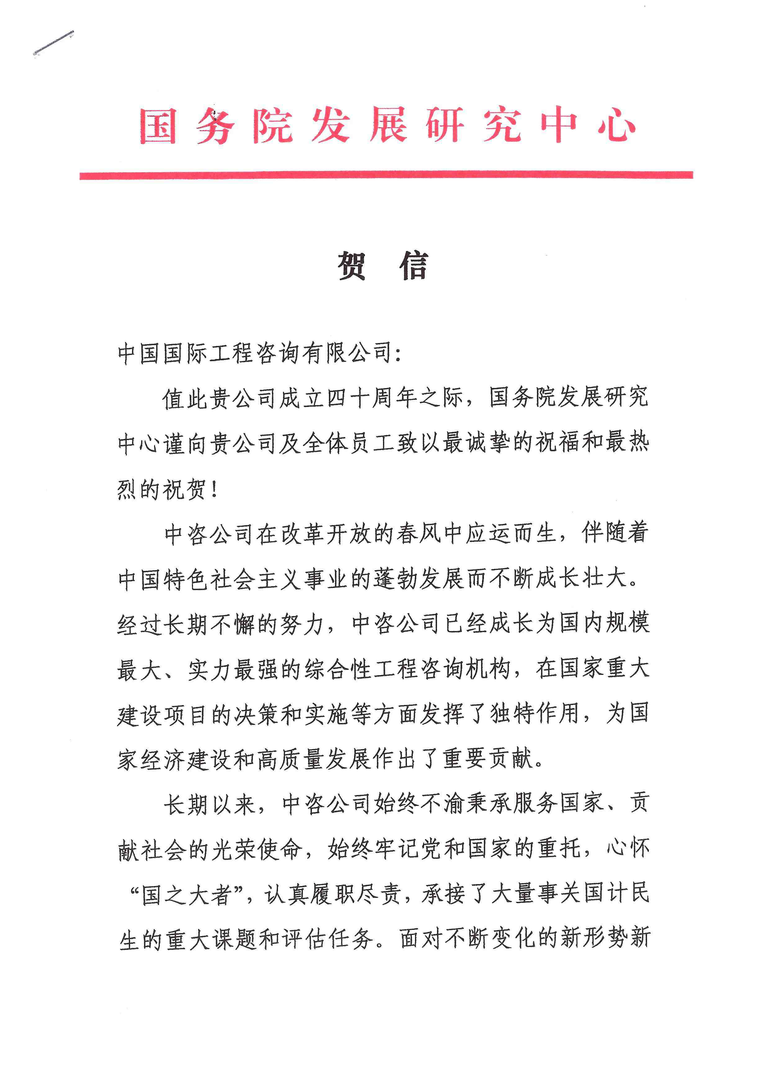 國務(wù)院發(fā)展研究中心發(fā)來賀信
