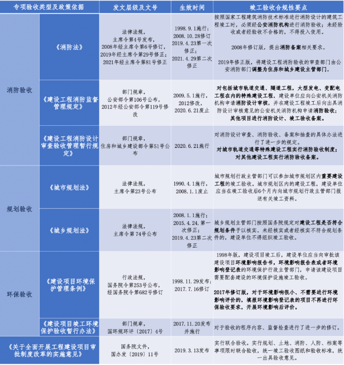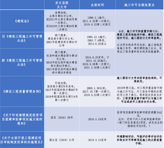 編者按 新中國(guó)成立以來(lái),我國(guó)基礎(chǔ)設(shè)施投資建設(shè)取得了舉世矚目的成就,是國(guó)家經(jīng)濟(jì)社會(huì)發(fā)展的重要支撐,為人民生活水平的提高做出了巨大貢獻(xiàn)。改革開放以來(lái),市場(chǎng)開始發(fā)揮配置資源的決定性作用,為我國(guó)基礎(chǔ)設(shè)施的發(fā)展煥發(fā)了新的活力。據(jù)統(tǒng)計(jì),我國(guó)基礎(chǔ)設(shè)施資產(chǎn)總規(guī)模在1990年排在全世界約第15位,2000年上升到第7位,2010年躍升為第3位,至2018年已居世界首位。 黨的二十大報(bào)告在回顧過(guò)去五年的工作和新時(shí)代十年的偉大變革中,充分肯定了基礎(chǔ)設(shè)施在經(jīng)濟(jì)社會(huì)中發(fā)揮的重要作用。報(bào)告指出,我國(guó)“建成世界最大的高速鐵路網(wǎng)、高速公路網(wǎng),機(jī)場(chǎng)港口、水利、能源、信息等基礎(chǔ)設(shè)施建設(shè)取得重大成就”。我國(guó)基礎(chǔ)設(shè)施多年來(lái)大規(guī)模的投資建設(shè)和存量資產(chǎn)的高速積累,是黨中央、國(guó)務(wù)院在建立社會(huì)主義市場(chǎng)經(jīng)濟(jì)體制背景下,關(guān)于投融資體制改革部署的重要成果。 項(xiàng)目前期工作手續(xù)的合規(guī)性要求,是基礎(chǔ)設(shè)施能夠發(fā)揮其應(yīng)有價(jià)值的重要前提,也是投融資體制改革關(guān)注的重點(diǎn)內(nèi)容之一。伴隨著政府職能轉(zhuǎn)變、深化“放管服”改革和擴(kuò)大有效投資等重大決策的關(guān)鍵部署,我國(guó)工程建設(shè)項(xiàng)目審批制度不斷優(yōu)化和改革,基礎(chǔ)設(shè)施項(xiàng)目投資前期決策管理經(jīng)歷了復(fù)雜的演變進(jìn)程,其合規(guī)性標(biāo)準(zhǔn)也在與時(shí)俱進(jìn)、不斷完善。當(dāng)前我國(guó)已進(jìn)入基礎(chǔ)設(shè)施存量時(shí)代,存量資產(chǎn)項(xiàng)目前期工作手續(xù)的合規(guī)性是重要的盤活條件之一,部分合規(guī)性問(wèn)題已成為新時(shí)代社會(huì)廣泛關(guān)注的焦點(diǎn)。本項(xiàng)專題研究立足投融資體制和項(xiàng)目審批制度變革的歷史背景,嘗試?yán)迩寤A(chǔ)設(shè)施項(xiàng)目在立項(xiàng)、土地、規(guī)劃、環(huán)境、建設(shè)施工等方面主要前期工作的歷史變革脈絡(luò),梳理不同管理事項(xiàng)之間的邏輯關(guān)聯(lián),從這一視角提供基礎(chǔ)設(shè)施項(xiàng)目前期工作手續(xù)的合規(guī)性認(rèn)識(shí)。本公眾號(hào)將研究報(bào)告的部分成果以系列文章的形式陸續(xù)刊發(fā),研究報(bào)告第一部分為背景與立項(xiàng)篇,第二部分為土地與規(guī)劃篇,本文是系列研究報(bào)告的第三部分(建設(shè)施工篇),供業(yè)界同仁參考。 基礎(chǔ)設(shè)施項(xiàng)目前期工作手續(xù)合規(guī)性研究(Ⅲ) 張雪飛 伍迪 摘要:開工和竣工是基礎(chǔ)設(shè)施項(xiàng)目建設(shè)施工方面的重要工作節(jié)點(diǎn),依法合規(guī)開展有關(guān)工作是項(xiàng)目的合規(guī)性前提。建筑工程施工許可證(或開工報(bào)告)是建筑施工單位符合施工條件、允許開工的批準(zhǔn)文件,是建設(shè)單位進(jìn)行工程施工的法律憑證,是工程項(xiàng)目由實(shí)施準(zhǔn)備轉(zhuǎn)向施工建設(shè)、由藍(lán)圖設(shè)計(jì)變成項(xiàng)目實(shí)體的重要工作手續(xù)。竣工驗(yàn)收是建設(shè)工程項(xiàng)目竣工后,全面考核建設(shè)工作、檢查是否符合設(shè)計(jì)要求和工程質(zhì)量的重要環(huán)節(jié),是工程項(xiàng)目由施工建設(shè)走向運(yùn)營(yíng)投產(chǎn),是建設(shè)投資成果轉(zhuǎn)入交付使用的關(guān)鍵工作事項(xiàng)。本文聚焦基礎(chǔ)設(shè)施項(xiàng)目建設(shè)施工方面的手續(xù),尤其對(duì)施工許可和竣工驗(yàn)收兩方面的主要內(nèi)容和制度演進(jìn)進(jìn)行系統(tǒng)梳理,供業(yè)界參考。 關(guān)鍵詞:基礎(chǔ)設(shè)施;合規(guī)性;施工許可;竣工驗(yàn)收;政策演進(jìn) 一、施工許可手續(xù)合規(guī)性 (一)內(nèi)涵與適用范圍 建筑工程施工許可證是建筑施工單位符合施工條件、允許開工的批準(zhǔn)文件,是建設(shè)單位進(jìn)行工程施工的法律憑證。根據(jù)有關(guān)法律政策規(guī)定,在中華人民共和國(guó)境內(nèi)從事各類房屋建筑及其附屬設(shè)施的建造、裝修裝飾和與其配套的線路、管道、設(shè)備的安裝,以及城鎮(zhèn)市政基礎(chǔ)設(shè)施工程的施工,建設(shè)單位在開工前應(yīng)當(dāng)向工程所在地縣級(jí)以上人民政府建設(shè)行政主管部門申請(qǐng)領(lǐng)取施工許可證,國(guó)務(wù)院建設(shè)行政主管部門確定的限額以下的小型工程除外。具體而言,對(duì)于工程投資額在30萬(wàn)元以下或者建筑面積在300平方米以下的建筑工程,可以不申請(qǐng)辦理施工許可證。各省、自治區(qū)、直轄市人民政府住房城鄉(xiāng)建設(shè)主管部門可以根據(jù)當(dāng)?shù)氐膶?shí)際情況,對(duì)限額進(jìn)行調(diào)整,并報(bào)國(guó)務(wù)院住房城鄉(xiāng)建設(shè)主管部門備案。按照國(guó)務(wù)院規(guī)定的權(quán)限和程序批準(zhǔn)開工報(bào)告的建筑工程,不再領(lǐng)取施工許可證。 辦理施工許可證有關(guān)事項(xiàng)應(yīng)主要以《中華人民共和國(guó)建筑法》(以下簡(jiǎn)稱《建筑法》)和《建筑