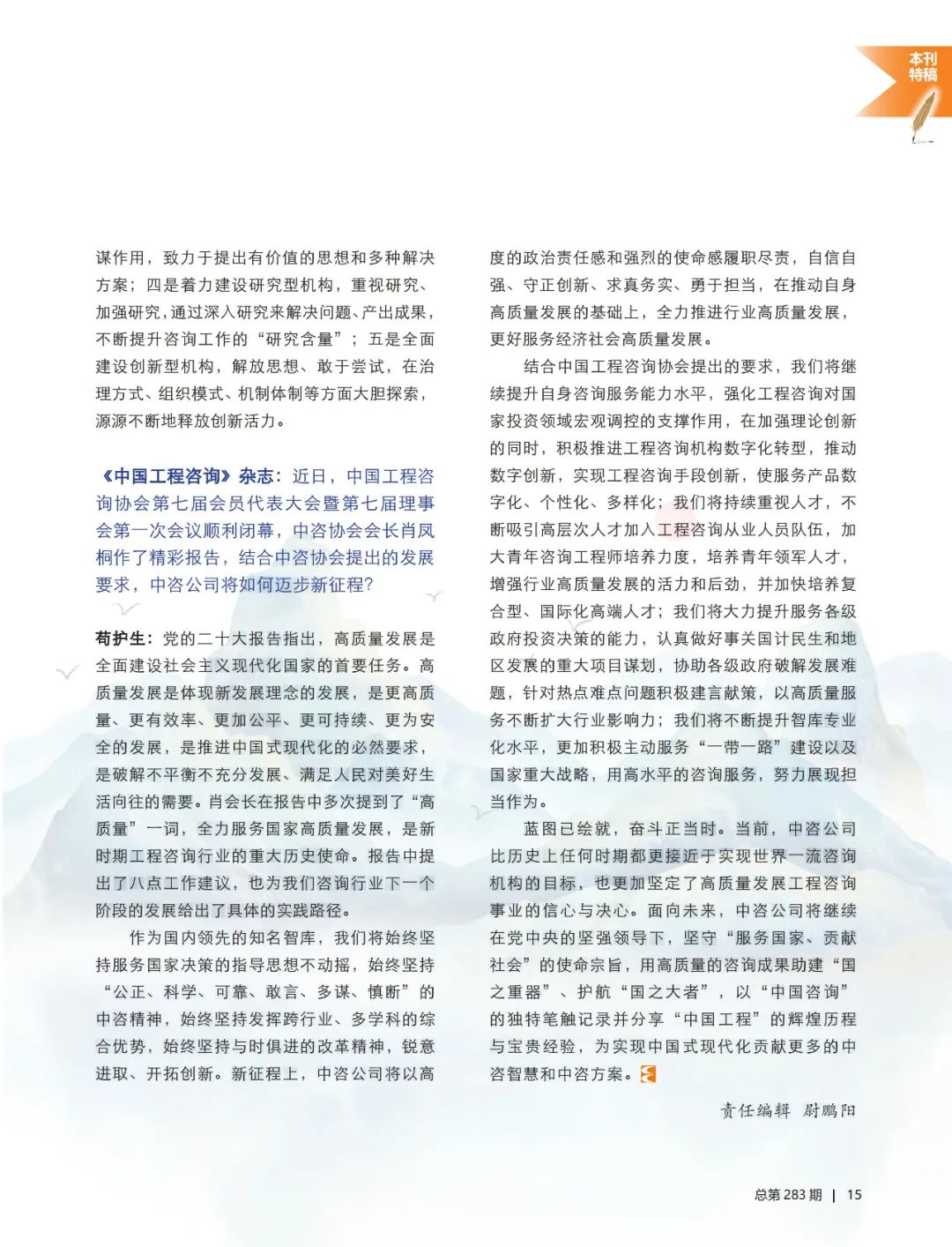 繼續(xù)用高質(zhì)量咨詢服務(wù)護(hù)航“中國工程”——專訪中國國際工程咨詢有限公司黨委書記、董事長、總經(jīng)理茍護(hù)生