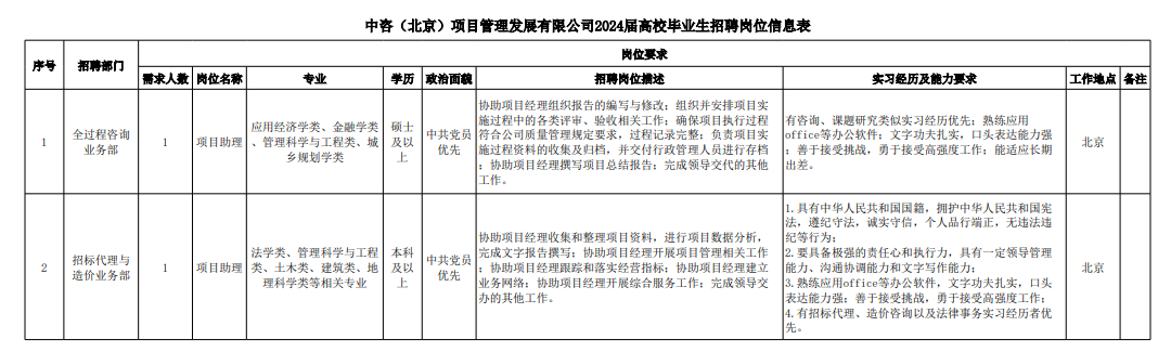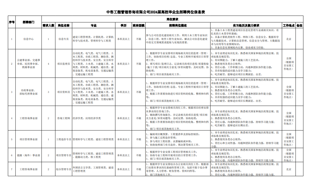 中國(guó)國(guó)際工程咨詢有限公司所屬二級(jí)企業(yè)2024年校園招聘公告(招聘已結(jié)束) | ||||