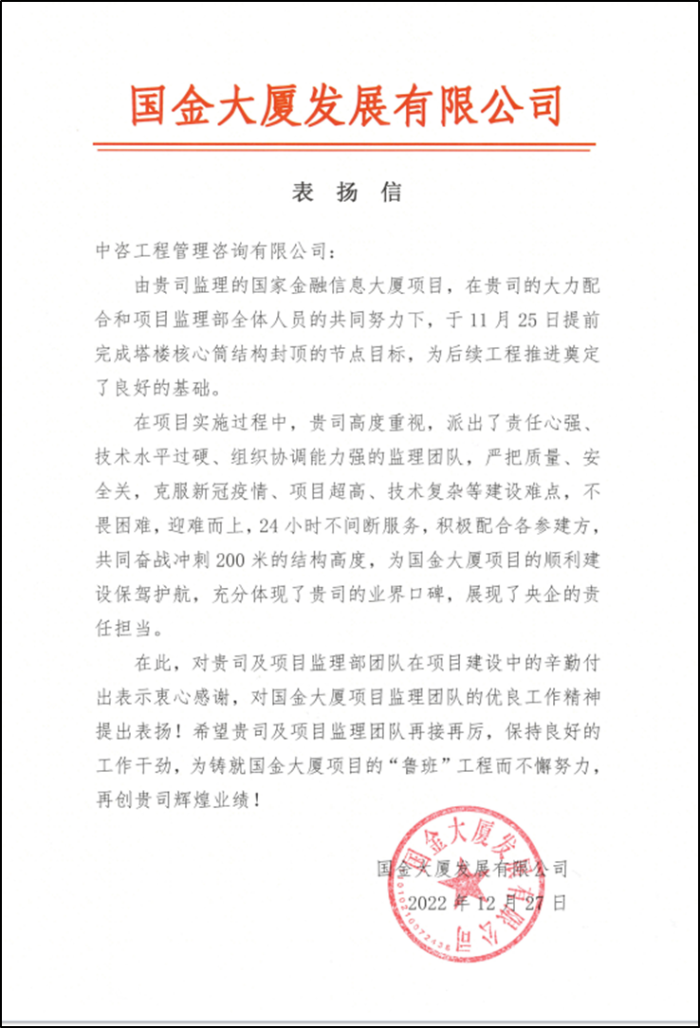 近日,共青團中央青年發(fā)展部發(fā)布全國優(yōu)秀青年突擊隊案例,對189個成績突出的青年突擊隊先進事跡予以通報表揚。中咨工程管理咨詢有限公司“呂大勇”青年突擊隊案例上榜!他們以實際行動奏響“請黨放心,強國有我”的青春強音。 國家金融信息大廈項目是新華社與北京市政府開展金融信息服務全面戰(zhàn)略合作的重要成果。為加快助力構建具有全球影響力的金融信息產業(yè)集群,努力盡早建成國際一流新型全媒體機構,2022年9月,國家金融信息大廈項目業(yè)主方提出“百日會戰(zhàn),沖刺塔樓核心筒結構封頂”目標。該項目由中咨管理公司負責監(jiān)理任務。 項目南立面效果圖 組織動員 吹響青春號角 面對工期緊張、質量要求高、安全風險大等不利情況,國家金融信息大廈項目監(jiān)理部組織動員廣大青年骨干充分發(fā)揮突擊隊作用,勤勉敬業(yè)、勇挑重擔,克服工程建設難點,以完成塔樓核心筒結構封頂目標為導向,成立以項目總監(jiān)呂大勇為隊長的青年突擊隊,他們鄭重承諾,向著目標篤定前行。 百日奮戰(zhàn) 譜寫青春贊歌 國家金融信息大廈項目監(jiān)理部以“呂大勇”青年突擊隊為百日奮戰(zhàn)主力核心,強化計劃管控,對塔樓核心筒的結構施工按工序進行流水推演,細化至工時管理。 嚴把質量、安全關。他們以抓好工程質量、安全管控為工作核心,24小時不間斷對工程質量、安全進行管控,主動參與制定和審核爬模、塔吊爬升垂直運輸體系的選用和確定,嚴格查驗體系工作狀態(tài)和荷載情況,在垂直運輸體系安裝、爬升過程中嚴格執(zhí)行旁站制度等,為項目的安全建設保駕護航。 數(shù)字化技術提質增效。他們積極參與管理公司BIM課題研究工作,在項目實施中通過BIM技術進行增效管理,對塔樓的施工步驟進行模擬、可視化交底等,提升管控水平和工作效率,為助力管理公司數(shù)字化轉型積累了實踐經(jīng)驗。 青年突擊隊對現(xiàn)場進行質量、安全管控 齊心協(xié)力 搶出青春速度 “呂大勇”青年突擊隊自組建以來,充分發(fā)揮青年的巨大潛力、青春活力、青年擔當,他們互學互鑒、團結合作,保質保量提前完成200米塔樓核心筒結構封頂目標,充分發(fā)揮了青年先鋒模范帶頭作用,他們以強烈的責任感和擔當精神,用實際行動詮釋了當代青年敢于擔當、勇于拼搏的精神風貌。他們的辛苦付出,得到建設單位的充分肯定。 “逢山開路、遇水架橋”,項目階段性目標的實現(xiàn)和建設單位高度表揚的背后,是青年突擊隊每位成員連續(xù)每天24小時的拼搏奉獻,即使在疫情感染快速席卷整個項目時,他們仍堅守崗位、保生產、保服務。春天的花蕾是秋實的信使,“呂大勇”青年突擊隊已逐漸成為一支素質過硬的骨干隊伍。 青年突擊隊內部黨課學習 青年突擊隊不僅是一個稱號,更是一面光榮的旗幟,引領著每一個青年投身其中,奮發(fā)向上,成長成才,時刻展現(xiàn)著新時代青年積極拼搏的風采。 任重道遠,重整行裝再出發(fā)。國家金融信息大廈項目監(jiān)理部“呂大勇”青年突擊隊正憑著敬業(yè)和奉獻,凝心聚力,沖鋒在前,以實際行動為鑄就國家金融信息大廈項目的“魯班工程” 而不懈努力!  | |||||
