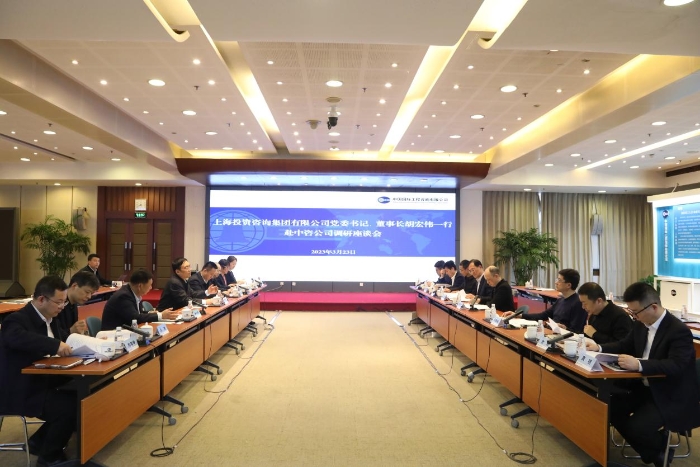 與上海投資咨詢集團有限公司座談 上海投資咨詢集團有限公司是國內(nèi)成立最早、門類最全、行業(yè)最強的綜合性咨詢機構(gòu)之一。胡宏偉希望與中咨公司在智庫建設(shè)、數(shù)字化變革、投融資咨詢、全過程咨詢等領(lǐng)域加強溝通合作。