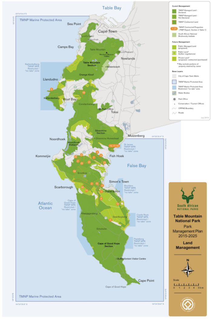 摘要:國(guó)家公園是一種保障國(guó)土生態(tài)安全、提升生態(tài)系統(tǒng)服務(wù)功能、推動(dòng)自然資源科學(xué)保護(hù)、開展國(guó)民精神教育、促進(jìn)地方綠色發(fā)展等多重目標(biāo)的有效模式。本文以南非的桌山國(guó)家公園和肯尼亞馬賽馬拉國(guó)家公園為例,簡(jiǎn)要介紹其基本概況、主要做法和成效,結(jié)合我國(guó)自然保護(hù)地發(fā)展實(shí)際情況,提出加快自然保護(hù)地申報(bào)建設(shè)、擴(kuò)大生物多樣性保護(hù)范圍、高度重視當(dāng)?shù)鼐用駞⑴c保護(hù)和建設(shè)、強(qiáng)化宣傳教育等建議。 關(guān)鍵詞: 國(guó)家公園;生物多樣性;南非;桌山;肯尼亞; 馬賽馬拉 一、南非、肯尼亞保護(hù)地基本情況 (一)南非保護(hù)地概況 南非共和國(guó)位于非洲大陸最南端,地處大西洋和印度洋交界處,東、南、西三面臨海。國(guó)土面積121.91萬平方公里,2022年人口6060.5萬人,國(guó)內(nèi)生產(chǎn)總值66383.46億蘭特(約合4052.38億美元),人均GDP109535蘭特(約合6687美元)。南非交通通訊等基礎(chǔ)設(shè)施具有較高水平,建筑樣式和行為法則均效仿歐洲。 南非擁有極為豐富的自然和人文旅游資源,是世界著名旅游度假勝地,是非洲接待國(guó)際游客最多的國(guó)家。2019年接待游客1022.8萬人,受新冠肺炎疫情影響,2021年游客量降至225.6萬人,2022年恢復(fù)至569.8萬人(圖1)。 圖1 南非共和國(guó)2019~2022年月度游客量統(tǒng)計(jì)變化 來源:南非統(tǒng)計(jì)局 南非有24個(gè)國(guó)家公園,涵蓋野生動(dòng)物保護(hù)、濕地保護(hù),海洋保護(hù)、森林生態(tài)保護(hù)等類型(圖2)。其中,桌山國(guó)家公園是其典型代表。 圖2 南非自然保護(hù)地分布圖[1] 桌山國(guó)家公園從開普敦的桌山綿延至大西洋與印度洋相交的海角處,占地面積221平方公里,幾乎跨越了整個(gè)開普省,是開普花卉世界遺產(chǎn)地(the Cape Floral Region World Heritage Site,2004)的一部分。桌山國(guó)家公園2/3的面積沒有設(shè)門卡點(diǎn),供人自由進(jìn)出。盡管公園有很多入口,但僅有4個(gè)是收費(fèi)的,以著名的桌山為公園主體,還包括開普角、好望角、企鵝灘、海豹島等保護(hù)區(qū)。桌山和開普角的游客量超過85萬人/年,企鵝灘的游客量每年也超過65萬人。通過無門入口不付費(fèi)進(jìn)出的游客量每年大概有400萬人[1]。 桌山,因一座臨海的山峰頂如桌面而得名,是“世界新七大自然奇觀”之一,最高海拔1088米。桌山擁有世界上最大規(guī)模的瀕危物種,主要植被類型是瀕危的半島砂巖凡波斯和極度瀕危的半島花崗巖凡波斯。桌山植被是開普植物保護(hù)區(qū)的一部分,估計(jì)有2285種植物(超過1100種是鄉(xiāng)土植物物種)被記錄在冊(cè),最常見的野生動(dòng)物是蹄兔,還有豪豬、貓鼬、蛇和龜?shù)取?/span> 圖3 南非桌山國(guó)家公園(攝影:張同升) 好望角自然保護(hù)區(qū)位于開普半島南端,始建于1939年,占地7750公頃,海岸線綿延40多公里,有100多處海灘,由西向東分成三個(gè)部分,即好望角、麥克萊爾角和開普角,其中開普角海拔238米,崖頂有始建于1857年的燈塔,登臨遠(yuǎn)眺,海天一色。植物有1200余種,遺存有世界上為數(shù)不多的金黃色帝王花;動(dòng)物有狒狒、開普斑馬等,鳥類有鴕鳥、黑鷹等250余種。 圖4 好望角(攝影:張同升) 企鵝灘保護(hù)區(qū)位于開普敦西蒙鎮(zhèn)的博德斯海灘(Boulders Beach)。這里的企鵝身材瘦小,喙前端有一圈淡白色的圓環(huán),整個(gè)足部以下全為黑色,只在非洲大陸南端的開普敦海域出現(xiàn),故名斑嘴環(huán)企鵝、黑足企鵝、非洲小企鵝。1910年時(shí)非洲企鵝約有150萬只,上世紀(jì)初期開普敦附近水域數(shù)起沉船漏油事件污染了企鵝的居住地,使得大部分企鵝死亡,只剩下不到原數(shù)量7%的非洲小企鵝得以生存與繁殖。1982年,2只非洲小企鵝來到博德斯海灘安家,當(dāng)?shù)鼐用褡园l(fā)進(jìn)行保護(hù),1983年,建立博德斯企鵝保護(hù)區(qū)。到2005年,這里的企鵝數(shù)量已達(dá)到3900只。受棲息地破壞、原油泄漏和其他海洋污染、氣候變暖導(dǎo)致魚群變遷及本地動(dòng)物的傷害、過度捕撈、大量旅游活動(dòng)沖突等因素影響,到2011年,保護(hù)區(qū)內(nèi)還剩下2100只企鵝。目前又逐漸恢復(fù)到3000多只[2]。 海豹島是開普敦豪特灣海域中的一個(gè)長(zhǎng)條形礁石島。每天上千只海豹成群結(jié)隊(duì)地登上礁石棲息,這些海豹屬于開普軟毛海豹,是南部非洲的本土品種,繁殖于南非及納米比亞的海岸線上,壽命20~40年。來往的漁民沒有對(duì)這些唾手可得的漁貨動(dòng)心,而是自發(fā)性地進(jìn)行保護(hù),附近海域禁漁,嚴(yán)禁旅游觀光人員登島,避免干擾其生活環(huán)境。 圖5 海豹島(攝影:陳子琦) (二)肯尼亞保護(hù)地概況 肯尼亞共和國(guó)位于非洲東部,毗鄰阿拉伯海,赤道橫貫中部,面積58.26萬平方公里,2022年人口5608.2萬人。世界銀行GDP國(guó)別統(tǒng)計(jì)數(shù)據(jù)顯示,2021年肯尼亞國(guó)內(nèi)生產(chǎn)總值1103.5億美元,人均GDP1704.97美元??夏醽喚硟?nèi)多高原,平均海拔1500米,自然環(huán)境優(yōu)美,常年氣候溫和,以擁有眾多國(guó)家公園和自然保護(hù)區(qū)而聞名。明代鄭和下西洋時(shí)曾到過肯尼亞濱海城市蒙巴薩和馬林迪??夏醽嗈r(nóng)業(yè)增加值占GD