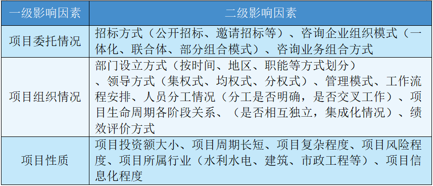 摘要:隨著我國基礎(chǔ)設(shè)施規(guī)模逐漸擴(kuò)大,對效率要求極高的規(guī)?;?、集群化、復(fù)雜化的建設(shè)工程大量出現(xiàn),傳統(tǒng)分階段咨詢模式已經(jīng)不能滿足這類項目的需求,全過程工程咨詢模式開始進(jìn)入人們的視野。我國全過程工程咨詢服務(wù)處于起步階段,缺乏完善的體系和標(biāo)準(zhǔn),尤其在酬金計取上缺乏參考依據(jù)。本文通過問卷調(diào)研、專家打分等形式對全過程工程咨詢酬金計取方式影響因素進(jìn)行研究,識別影響計費(fèi)方式的重要因素,為全過程工程咨詢服務(wù)實踐中計費(fèi)模式選取提供參考。 關(guān)鍵詞:全過程工程咨詢;計費(fèi)模式;影響因素 全過程工程咨詢服務(wù)是指由咨詢公司為業(yè)主提供涵蓋工程全業(yè)務(wù)、全生命周期、全方面的咨詢服務(wù)方案。全過程工程咨詢是從各專項咨詢業(yè)務(wù)基礎(chǔ)上發(fā)展而來,但并非各階段工程咨詢業(yè)務(wù)的簡單組合,是各環(huán)節(jié)有機(jī)整合,系統(tǒng)性思想貫穿其中,相較于傳統(tǒng)咨詢模式,具有節(jié)約投資成本、縮短項目工期、提高服務(wù)質(zhì)量等優(yōu)勢。 我國目前全過程工程咨詢發(fā)展仍處于起步階段,企業(yè)推行過程中面臨不少困境,其中一個問題就是收費(fèi)體系的不健全、不完善,計費(fèi)模式選擇缺乏參考依據(jù)。目前各企業(yè)主要采取單項收費(fèi)匯總、總價費(fèi)率、人工工時、“1+N”計費(fèi)四種收費(fèi)模式,而具體選擇哪一種模式并沒有相應(yīng)的標(biāo)準(zhǔn),計費(fèi)問題是咨詢項目從委托到落實過程中不可避免的重要問題,針對不同的項目,計費(fèi)模式的選擇不能一概而論,生搬硬套以往經(jīng)驗,最終模式的確定是政策環(huán)境、項目實際情況等多種因素綜合考量的結(jié)果。 計費(fèi)模式影響因素研究可以識別與計費(fèi)模式相關(guān)聯(lián)的重要因素,企業(yè)實踐中能更有針對性地對這些因素進(jìn)行綜合考量,為決策過程提供依據(jù),提高決策的科學(xué)性。本文以全過程工程咨詢計費(fèi)選擇影響因素為研究對象,通過文獻(xiàn)調(diào)研、政策分析等形式得到影響全過程工程咨詢計費(fèi)模式選擇的8個一級影響因素以及相應(yīng)的31個二級影響因素,并通過專家打分得到各個因素之間的重要性關(guān)系,最后從影響因素視角給出計費(fèi)模式選擇建議,為企業(yè)實踐提供依據(jù),豐富了全過程工程咨詢計費(fèi)理論研究,為相關(guān)政策制定提供一定參考。 一、我國全過程工程咨詢服務(wù)酬金計取方式影響因素識別 根據(jù)文獻(xiàn)梳理和相關(guān)政策分析,綜合考慮全過程工程咨詢項目內(nèi)外部環(huán)境,本文從外部環(huán)境、項目本身、利益相關(guān)者、計費(fèi)方式四個層面出發(fā),對全過程工程咨詢酬金計取方式產(chǎn)生影響的因素進(jìn)行了分析。 (一)外部環(huán)境層面 從外部環(huán)境層面來看,對于全過程工程咨詢項目,每個地方的政策以及當(dāng)?shù)卣闹С执胧┯兴煌赡軙绊懫髽I(yè)關(guān)于酬金計取方式的選擇傾向,同時進(jìn)行具體的費(fèi)用核算時必須考慮到市場行情和當(dāng)?shù)氐奈飪r水平,對于人工工時這類計費(fèi)模式更是依賴于各地方發(fā)展?fàn)顩r和物價水平。另一方面,從咨詢行業(yè)來看,目前全過程工程咨詢計費(fèi)模式選擇沒有統(tǒng)一的標(biāo)準(zhǔn),企業(yè)進(jìn)行選擇要參照行業(yè)現(xiàn)有的實踐情況,現(xiàn)有各類計費(fèi)標(biāo)準(zhǔn)的完善程度也是企業(yè)決策時的重要依據(jù)。 表1 外部環(huán)境層面可能影響因素 資料來源:作者根據(jù)公開資料整理 (二)項目本身層面 從項目本身層面來看,招標(biāo)方式、組織模式等項目委托情況可能會對計費(fèi)模式選擇造成影響,公開招標(biāo)、邀請招標(biāo)或者總體招標(biāo)、分階段招標(biāo)等招標(biāo)形式會對交易費(fèi)用產(chǎn)生影響,企業(yè)選擇一體化或聯(lián)合體等組織模式以及選擇哪些咨詢業(yè)務(wù)進(jìn)行外包都可能影響后續(xù)的計費(fèi)模式選擇。項目的組織情況例如部門設(shè)立的方式、領(lǐng)導(dǎo)方式等會影響整個項目的架構(gòu)和協(xié)調(diào)性,是按照職能還是時間進(jìn)行部門劃分,采用集權(quán)式或分權(quán)式管理,項目人員分工是否存在交叉,項目生命周期各階段業(yè)務(wù)之間是否有較高獨(dú)立性等情況都會影響到整個項目的集成或分散程度,計費(fèi)模式選擇要與項目各方面安排相配合。從項目本身性質(zhì)來看,不同項目所屬行業(yè)不同,項目周期以及整個工程面臨的復(fù)雜程度和風(fēng)險程度也不同,計費(fèi)模式選擇要能夠覆蓋項目的投入成本,反映出項目的性質(zhì)特點,一概而論必然會造成最終費(fèi)用偏高或偏低等不合理現(xiàn)象發(fā)生。 表2 項目層面可能影響因素 資料來源:作者根據(jù)公開資料整理 (三)利益相關(guān)者層面 從利益相關(guān)者角度,選擇科學(xué)合理的計費(fèi)模式最終是為了使項目各方的需求得以滿足,最大限度保障各方利益。項目委托方是主導(dǎo)者,也是咨詢業(yè)務(wù)的需求者,計費(fèi)模式要考慮到委托方的需求,參考其以往合作經(jīng)歷,考慮其選擇上的偏好。任何選擇都需要承擔(dān)一