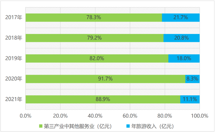 摘要:通過文獻(xiàn)研究、實(shí)地調(diào)研等方法客觀評(píng)估平谷區(qū)旅游經(jīng)濟(jì)發(fā)展現(xiàn)狀、存在的問題,提出可通過設(shè)定旅游經(jīng)濟(jì)量化指標(biāo)、構(gòu)建核心產(chǎn)品體系、加快農(nóng)旅跨界融合、重構(gòu)設(shè)計(jì)-營銷-宣傳體系等措施,促進(jìn)平谷區(qū)旅游經(jīng)濟(jì)實(shí)現(xiàn)更高水平、更優(yōu)質(zhì)發(fā)展。 關(guān)鍵詞:平谷區(qū);旅游經(jīng)濟(jì);謀劃思路 一、引言 伴隨著新冠疫情進(jìn)入“乙類乙管”常態(tài)化防控階段,旅游業(yè)迎來了全面復(fù)蘇的東風(fēng)。平谷區(qū)作為北京市生態(tài)涵養(yǎng)區(qū)之一,是北京市民休閑游憩的理想地帶。北京市政府歷來高度重視生態(tài)涵養(yǎng)區(qū)旅游業(yè)等環(huán)境友好型綠色產(chǎn)業(yè),先后出臺(tái)《北京市人民政府辦公廳關(guān)于健全生態(tài)保護(hù)補(bǔ)償機(jī)制的實(shí)施意見》等政策文件,明確支持發(fā)展生態(tài)旅游、精品民宿、森林康養(yǎng)、田園綜合體等旅游業(yè)態(tài)。目前,延慶區(qū)、懷柔區(qū)、密云區(qū)旅游業(yè)已發(fā)展成為當(dāng)?shù)貞?zhàn)略性支柱產(chǎn)業(yè),旅游收入占地區(qū)生產(chǎn)總值比重均突破8%,其中延慶區(qū)占比高達(dá)13%。與以上三區(qū)相比,平谷區(qū)旅游經(jīng)濟(jì)規(guī)模體量小,對(duì)經(jīng)濟(jì)貢獻(xiàn)總體水平低,亟待尋求有效的發(fā)展路徑。本文系統(tǒng)梳理平谷區(qū)旅游資源特點(diǎn)、市場(chǎng)開發(fā)條件,分析平谷旅游業(yè)發(fā)展現(xiàn)狀及存在的主要問題等,旨在探索提振平谷區(qū)旅游經(jīng)濟(jì)的有效措施,為平谷區(qū)旅游產(chǎn)業(yè)發(fā)展提供參考思路。 二、平谷區(qū)旅游經(jīng)濟(jì)發(fā)展現(xiàn)狀研究 (一)全區(qū)產(chǎn)業(yè)結(jié)構(gòu)情況 平谷區(qū)位于北京市東北部,與天津河北交界,屬于北京的遠(yuǎn)郊,是北京市七大生態(tài)涵養(yǎng)區(qū)之一,生態(tài)保護(hù)是首要任務(wù)也是最根本功能定位。北京市政府自2014年以來,先后發(fā)布4版(2014版、2015版、2018版、2022版)產(chǎn)業(yè)發(fā)展禁限目錄,對(duì)平谷等生態(tài)涵養(yǎng)區(qū)產(chǎn)業(yè)發(fā)展方向提出明確要求。從4版產(chǎn)業(yè)禁限目錄內(nèi)容來看,平谷區(qū)產(chǎn)業(yè)發(fā)展局促條件多、生態(tài)環(huán)保門檻要求高,發(fā)展范疇以低能耗、高附加值產(chǎn)業(yè)為主,但由于地處遠(yuǎn)郊區(qū)產(chǎn)業(yè)集聚、政策環(huán)境、軟硬件配套往往跟不上,對(duì)高精尖類產(chǎn)業(yè)、人才、資金等要素吸引力薄弱。因此,發(fā)展高科技農(nóng)業(yè)和現(xiàn)代服務(wù)業(yè)是平谷區(qū)立足現(xiàn)實(shí)情況和生態(tài)資源優(yōu)勢(shì)的重要選擇。平谷區(qū)統(tǒng)計(jì)公報(bào)數(shù)據(jù)顯示,2018年-2022年的五年間,平谷區(qū)產(chǎn)業(yè)結(jié)構(gòu)不斷優(yōu)化,轉(zhuǎn)型升級(jí)成效顯著,第三產(chǎn)業(yè)已占據(jù)絕對(duì)優(yōu)勢(shì)地位。2022年平谷區(qū)三次產(chǎn)業(yè)結(jié)構(gòu)情況為3.3:22.6:74.1,第三產(chǎn)業(yè)占比遠(yuǎn)高于第一產(chǎn)業(yè)和第二產(chǎn)業(yè),與2018年相比,第三產(chǎn)業(yè)占比提升18個(gè)百分點(diǎn),依托第三產(chǎn)業(yè)帶動(dòng)和促進(jìn)區(qū)域經(jīng)濟(jì)發(fā)展趨勢(shì)效益日益凸顯。 數(shù)據(jù)來源:2018年-2021年平谷區(qū)統(tǒng)計(jì)年鑒,2022年平谷區(qū)國民經(jīng)濟(jì)和社會(huì)發(fā)展統(tǒng)計(jì)公報(bào)。圖1 2018年-2022年平谷區(qū)三產(chǎn)占地區(qū)生產(chǎn)總值比重情況 摒除新冠疫情影響因素,以2017年-2019年數(shù)據(jù)為參考,平谷區(qū)旅游收入對(duì)第三產(chǎn)業(yè)的產(chǎn)值貢獻(xiàn)系數(shù)穩(wěn)步維持在0.2左右,意味著旅游業(yè)產(chǎn)值每增加1個(gè)百分點(diǎn),平谷區(qū)第三產(chǎn)業(yè)產(chǎn)值平均將提升0.2個(gè)百分點(diǎn)。此外,旅游業(yè)還是平谷區(qū)有效帶動(dòng)城鄉(xiāng)居民就業(yè)的重要抓手,直接和間接帶動(dòng)就業(yè)人數(shù)占平谷區(qū)總就業(yè)人口的11.7%,每100個(gè)就業(yè)人口中有11.7人是旅游業(yè)相關(guān)從業(yè)人口。刺激旅游市場(chǎng)消費(fèi)活力、提振旅游經(jīng)濟(jì),對(duì)于夯實(shí)平谷區(qū)第三產(chǎn)業(yè)基礎(chǔ)性產(chǎn)業(yè)地位,乃至提升全區(qū)社會(huì)經(jīng)濟(jì)發(fā)展水平至關(guān)重要。 數(shù)據(jù)來源:2018年-2022年平谷區(qū)統(tǒng)計(jì)年鑒,2022年北京文化和旅游統(tǒng)計(jì)概覽。圖2 2017年-2021年平谷區(qū)旅游收入及其他服務(wù)業(yè)占第三產(chǎn)業(yè)產(chǎn)值比重情況 (二)旅游業(yè)發(fā)展基本情況 疫情前三年(2017年-2019年),平谷區(qū)年均旅游收入為36.7億元,年均接待人次為660萬人次。2018年旅游業(yè)發(fā)展最好,旅游收入38.6億元,同比增長10.9%,接待人次689.8萬人次,同比增長2.7%。2019年因創(chuàng)建國家全域旅游示范區(qū),關(guān)停部分旅游相關(guān)配套與服務(wù)設(shè)施,旅游經(jīng)濟(jì)整體出現(xiàn)小幅回落情況。2020年為疫情暴發(fā)第一年,受行業(yè)大環(huán)境影響,旅游收入與接待人次出現(xiàn)大幅下浮,2021年開始回升,旅游收入