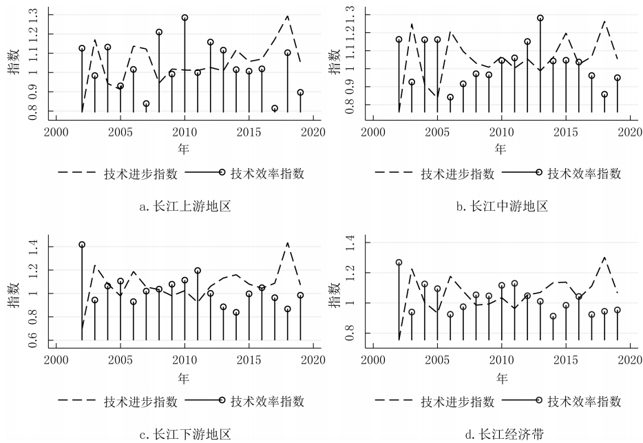 摘要:正確認識和研判長江經(jīng)濟帶科技創(chuàng)新效率的變化特征有助于更好地發(fā)揮科技創(chuàng)新對經(jīng)濟高質量發(fā)展的支撐作用?;?002-2019年長江經(jīng)濟帶沿線11省份的面板數(shù)據(jù),利用GS-SBM模型測度了長江經(jīng)濟帶的科技創(chuàng)新效率,分別使用Malmquist指數(shù)、Dagum基尼系數(shù)以及 Sigma收斂、Beta絕對(條件)收斂考察了長江經(jīng)濟帶科技創(chuàng)新效率的演變、空間差距和收斂性。研究發(fā)現(xiàn):長江經(jīng)濟帶及其上、中、下游地區(qū)科技創(chuàng)新效率整體上而言保持提升趨勢,且存在較大空間差距,超變密度對總體差距的貢獻最大;長江經(jīng)濟帶及其上、中、下游地區(qū)科技創(chuàng)新效率幾乎不存在Sigma收斂和Beta絕對(條件)收斂;長江經(jīng)濟帶發(fā)展戰(zhàn)略實施之后,科技創(chuàng)新效率提高得更加明顯,并從技術進步與技術效率的雙重驅動轉變?yōu)楦嗟匾揽考夹g進步,科技創(chuàng)新效率的擴散狀態(tài)更強?;诖?,研究認為要科學辯證地看待區(qū)域科技創(chuàng)新效率的差距,發(fā)揮長江經(jīng)濟帶發(fā)展戰(zhàn)略和科教興國戰(zhàn)略在提升和平衡科技創(chuàng)新效率中的積極作用。 關鍵詞:長江經(jīng)濟帶;科技創(chuàng)新效率;時空格局;收斂性 科技創(chuàng)新是長江經(jīng)濟帶建設現(xiàn)代經(jīng)濟體系、實現(xiàn)高質量發(fā)展的戰(zhàn)略支撐,是推動中國式現(xiàn)代化的第一力量。經(jīng)過多年的對外開放,長江經(jīng)濟帶已經(jīng)融入了全球分工體系,但是大量本土企業(yè)被鎖定在產(chǎn)業(yè)鏈或者產(chǎn)品價值鏈的中低端,必須依靠科技創(chuàng)新才能實現(xiàn)在全球價值鏈上的攀升。同時,雖然長江經(jīng)濟帶是我國重要的現(xiàn)代工業(yè)集聚地,工業(yè)基礎扎實、規(guī)模龐大,但是關鍵核心技術仍然缺乏,尤其是在以美國為首的西方國家對華遏制和挑戰(zhàn)的情況下,需要以科技創(chuàng)新來解決“卡脖子”問題,加快實現(xiàn)高水平科技自立自強。此外,為了加快經(jīng)濟增長,長江經(jīng)濟帶沿線多個省市推進工業(yè)化和城鎮(zhèn)化,忽略了人與自然的和諧共生,導致長江沿線部分地區(qū)環(huán)境污染問題突出,生態(tài)功能退化,碳排放持續(xù)增加。基于此,無論是貫徹落實習近平總書記“共抓大保護、不搞大開發(fā)”的指示精神,還是如期或者率先實現(xiàn)碳達峰碳中和目標,都要求長江經(jīng)濟帶沿線省市轉變發(fā)展模式,走生態(tài)優(yōu)先、綠色低碳發(fā)展之路,發(fā)揮科技創(chuàng)新在經(jīng)濟綠色轉型中的支撐作用。 由于科技創(chuàng)新本質上來講是一種知識生產(chǎn)過程,所以就存在科技創(chuàng)新成果的產(chǎn)出與科技創(chuàng)新資源和要素的投入比問題,即科技創(chuàng)新效率的高低,這種高低變化分別反映在時間和空間上差距:一是在某一區(qū)域內(nèi)科技創(chuàng)新資源和要素投入的持續(xù)增長,并沒有帶來相應的科技創(chuàng)新產(chǎn)出數(shù)量增長或者質量的提升;二是將同樣的科技創(chuàng)新資源和要素投入到不同區(qū)域,其科技創(chuàng)新產(chǎn)出數(shù)量或者質量顯著不同。這兩個維度分別刻畫了區(qū)域內(nèi)與區(qū)域間科技創(chuàng)新效率的差別,不僅影響了科技創(chuàng)新資源和要素的配置,而且也影響了科技創(chuàng)新對經(jīng)濟發(fā)展的貢獻程度,成為區(qū)域發(fā)展不平衡的底層因素之一,給區(qū)域協(xié)調發(fā)展帶來了較大的挑戰(zhàn)。除此之外,我國依然是世界上最大的發(fā)展中國家,科技創(chuàng)新資源較歐美發(fā)達國家而言則相對稀缺,這就需要通過提高科技創(chuàng)新效率來實現(xiàn)科技創(chuàng)新資源的最大化利用。 為了更加充分和有效地利用長江經(jīng)濟帶科技創(chuàng)新資源,促進長江經(jīng)濟帶經(jīng)濟高質量發(fā)展,就必須正視科技創(chuàng)新效率在時間和空間上的演變,科學認識科技創(chuàng)新效率向高水平收斂的機制,因此,不僅要考察長江經(jīng)濟帶科技創(chuàng)新效率的動態(tài)變化規(guī)律,還需要充分考慮科技創(chuàng)新效率的區(qū)域不平衡問題,即其上、中、下游地區(qū)之間以及各自內(nèi)部科技創(chuàng)新效率的差距變化。本文首先基于數(shù)據(jù)包絡方法測度了長江經(jīng)濟帶及其上、中、下游地區(qū)的科技創(chuàng)新效率,分解了導致科技創(chuàng)新效率變化的驅動因素,然后利用dagum基尼系數(shù)考察了長江經(jīng)濟帶及其上、中、下游地區(qū)的科技創(chuàng)新效率的空間差距及其形成來源,接著分別采用Sigma收斂和Bate收斂來檢驗了長江經(jīng)濟帶及其上、中、下游地區(qū)的科技創(chuàng)新效率的收斂性,最后給出了相關對策啟示。 一、文獻綜述 多年來,我國一直高度重視科技創(chuàng)新在國民經(jīng)濟發(fā)展中的重要作用,將推動科技創(chuàng)新做為黨治國理政的核心內(nèi)容之一。在中國共產(chǎn)黨第二十次全國代表大會報告提出“必須堅持科技是第一生產(chǎn)力、人才是第一資源、創(chuàng)新是第一動力”。鑒于此,有學者圍繞我國科技創(chuàng)新問題從多個角度展開了研究,取得了一批較高質量的成果。這里針對本文的研究目的,主要對科技創(chuàng)新效率方面的相關