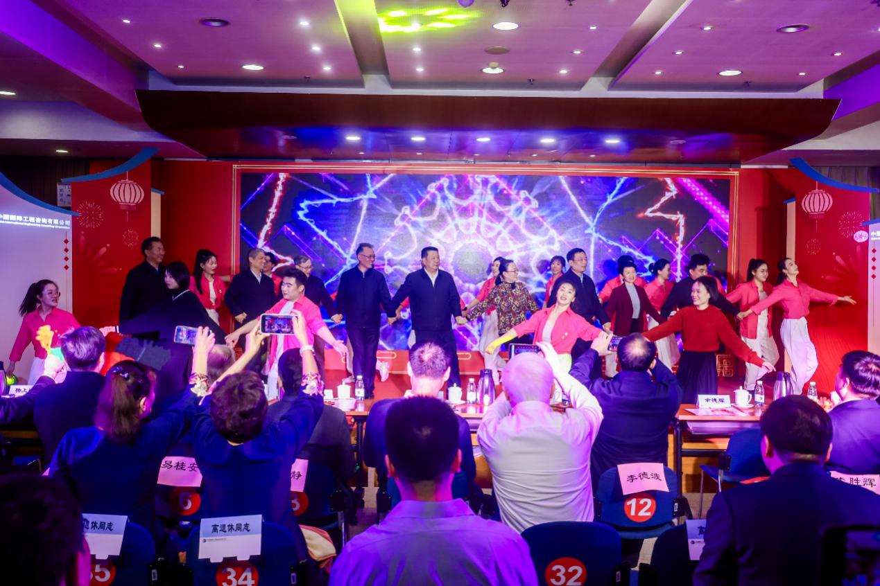 一元復(fù)始龍?jiān)鰵q,萬物生輝燕報(bào)春。 2024年2月2日下午,在北方小年歡樂祥和的氛圍中,中咨公司新春聯(lián)歡會在中咨大廈舉行。公司黨委書記、董事長、總經(jīng)理茍護(hù)生,公司外部董事楊愛民、余德輝,公司領(lǐng)導(dǎo)王麗靜、潘小海、沈浩、楊上明,公司老領(lǐng)導(dǎo)楊東民、牛向春,首席咨詢師朱軍、首席管理師李相明,與員工歡聚一堂,辭舊迎新。 聯(lián)歡會以“同慶龍年祥瑞,共鑄中咨輝煌”為主題,禮贊奮斗者、筑夢新征程。3個(gè)篇章19個(gè)節(jié)目,合唱、舞蹈、歌曲串燒、情景劇、快板、三句半、脫口秀等員工自導(dǎo)自演的節(jié)目一一閃亮登場,以積極向上的內(nèi)容、昂揚(yáng)向上的風(fēng)貌和自信陽光的演繹,贏得陣陣掌聲,展現(xiàn)中咨人堅(jiān)定不移踐行“五五戰(zhàn)略”、團(tuán)結(jié)一心建設(shè)國家高端智庫和世界一流咨詢機(jī)構(gòu)的信心和信念。 開場舞《過年啦》年味兒十足,中咨舞蹈隊(duì)用活力和熱情拉開聯(lián)歡會的帷幕。 第一篇章《踏歌行·聚智謀遠(yuǎn)》,濃郁的中國風(fēng)、民族范,傳遞天南海北中咨人對祖國的深情和對事業(yè)的深愛。 中咨工程有限公司西南分公司帶來富有西南民族特色的歌舞《太陽出來喜洋洋》,寫滿公司發(fā)展成果與未來展望的改編歌詞,唱進(jìn)了每個(gè)中咨人的心坎兒。 人力資源部、國際業(yè)務(wù)部、中咨海外公司、生態(tài)所聯(lián)合表演音樂快板《奮力拼搏中咨人》,回顧過去一年的拼搏、付出與收獲,展現(xiàn)中咨大團(tuán)隊(duì)敢打敢拼的精神風(fēng)貌。 中咨工程公司帶來婀娜多姿的傣族舞《綠之夢》,四位來自中咨員工家庭的可愛小寶貝伴舞,并為現(xiàn)場觀眾送祝福。 國際業(yè)務(wù)部、中咨投資管理公司、中咨工程公司帶來《新民族風(fēng)歌曲聯(lián)唱》,用優(yōu)美的旋律、深情的演唱,為大家?guī)硪粓鲆暵牭氖⒀纭?/p> 中咨民樂團(tuán)演繹《歡慶組曲》,經(jīng)典曲目完美串聯(lián),時(shí)而古韻幽香,時(shí)而歡快激昂,把觀眾帶進(jìn)民族音樂藝術(shù)的殿堂。 第二篇章《勇向前·不負(fù)韶華》,以前衛(wèi)先鋒的節(jié)目形式,展現(xiàn)中咨人青春澎湃的氣息。 國防業(yè)務(wù)部脫口秀《論一個(gè)工程咨詢師的自我修養(yǎng)》,生動詼諧地展現(xiàn)了中咨人的工作常態(tài)和樂觀心態(tài)。 中咨舞蹈隊(duì)帶來動感十足的舞蹈《時(shí)代感》,公司領(lǐng)導(dǎo)與舞蹈演員一起登臺,載歌載舞,熱情洋溢,全場歡呼雷動,掀起聯(lián)歡會的高潮。 國防業(yè)務(wù)部原創(chuàng)歌曲《礪劍》,唱響衛(wèi)我家國、熱血飛揚(yáng),點(diǎn)燃中咨人胸懷“國之大者”、助建“國之重器”的萬丈豪情。 中咨高技術(shù)咨詢中心帶來改編歌舞《愛你》。項(xiàng)目經(jīng)理們的“小心思、大境界”是怎樣的?節(jié)目為您生動揭曉。 中咨管理公司《歡天喜地賀新春,樂趣無窮三句半》,演繹中咨人的智慧與汗水,抒發(fā)對公司的美好祝愿。 中咨發(fā)展(武漢)公司帶來舞蹈《我們都是追夢人》,在優(yōu)美的舞姿中再現(xiàn)了中咨人在項(xiàng)目現(xiàn)場的辛勤耕耘,展現(xiàn)了基層一線員工的實(shí)干與擔(dān)當(dāng)。 第三篇章《慶嘉年·鑄夢未來》,凝聚了中咨人對新時(shí)代的憧憬、對新使命的召喚。 中咨公司培訓(xùn)中心情景劇《我們是新生代》,截取工作中的一個(gè)小片段,反映中咨人累并快樂著的工作常態(tài)。正值農(nóng)歷小年,演員們還送上熱騰騰的餃子,溫暖與喜悅感染了每位在場觀眾。 資源與環(huán)境業(yè)務(wù)部演繹歌舞《如愿》,“夢你所夢的團(tuán)圓,愿你所愿的永遠(yuǎn)”,表達(dá)了中咨人傳承先輩精神、矢志接續(xù)奮斗的赤子情懷。 中咨規(guī)劃設(shè)計(jì)院帶來前衛(wèi)現(xiàn)代的爵士舞《致敬經(jīng)典》,讓觀眾“眼前一亮”。 中咨公司2023年先進(jìn)集體和個(gè)人獲獎代表齊聲合唱《團(tuán)結(jié)就是力量》,激勵中咨人繼續(xù)團(tuán)結(jié)奮斗,用智慧與汗水譜寫公司高質(zhì)量發(fā)展新篇章。 天涯咫尺,息息相通。公司駐海外員工代表——經(jīng)營財(cái)務(wù)部譚增輝、中咨管理公司援尼泊爾梯姆雷邊檢站項(xiàng)目部、中咨工程公司烏茲別克斯坦奧林匹克體育城項(xiàng)目部特別錄制了拜年歌曲,遙寄祝福、共迎新春。 資源與環(huán)境業(yè)務(wù)部羅婧揮毫潑墨,創(chuàng)作書法作品“龍騰盛世”,祝愿中咨公司龍騰虎躍、中咨人龍馬精神。 大河湯湯,春光無限。中咨合唱團(tuán)傾情演繹《我們是運(yùn)河的流水》《春風(fēng)十萬里》,用優(yōu)美的歌聲向中咨人的奮斗致敬,向偉大祖國表達(dá)衷心祝福。 聯(lián)歡會還以游戲、抽獎等方式與干部職工進(jìn)行互動?!拔菇圩印薄岸肚蜻_(dá)人”“搶椅子”三個(gè)游戲考驗(yàn)?zāi)醵群蛻?yīng)變力,讓活動更加趣味橫生。抽獎環(huán)節(jié)扣人心弦、驚喜連連?,F(xiàn)場一片歡聲笑語、其樂融融。 聯(lián)歡會接近尾聲,公司領(lǐng)導(dǎo)代表公司黨委、董事會和經(jīng)營班子成員,向長期以來支持和關(guān)心公司發(fā)展的各級領(lǐng)導(dǎo)和專家、向辛勤工作的全體中咨職工和家屬以及所有離退休老同志表示衷心的感謝,并送上誠摯的祝福,號召大家龍