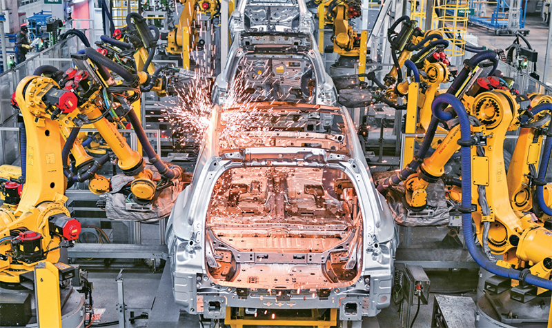 加快發(fā)展新質(zhì)生產(chǎn)力,要推動數(shù)字技術(shù)在先進制造業(yè)中的應(yīng)用擴散,形成兩者之間相互支撐、相互促進的良性循環(huán)。圖為2024年1月10日,在理想汽車常州基地車間,機械手臂在進行焊接作業(yè)。 新華社記者 季春鵬/攝 發(fā)展新質(zhì)生產(chǎn)力要形成新動能。科技創(chuàng)新、產(chǎn)業(yè)創(chuàng)新、企業(yè)創(chuàng)新、市場創(chuàng)新、產(chǎn)品創(chuàng)新、業(yè)態(tài)創(chuàng)新、管理創(chuàng)新等各領(lǐng)域的創(chuàng)新,以及這些創(chuàng)新成果在更大范圍內(nèi)的擴散應(yīng)用,共同構(gòu)成了支撐高質(zhì)量發(fā)展的新動能,是新質(zhì)生產(chǎn)力的整體呈現(xiàn)。根據(jù)國家統(tǒng)計局?jǐn)?shù)據(jù),2022年,我國以新產(chǎn)業(yè)、新業(yè)態(tài)、新商業(yè)模式為核心內(nèi)容的“三新”經(jīng)濟增加值為210084億元,相當(dāng)于國內(nèi)生產(chǎn)總值的比重為17.36%。2023年全年,規(guī)模以上工業(yè)中裝備制造業(yè)增加值比上年增長6.8%,占規(guī)模以上工業(yè)增加值比重為33.6%;高技術(shù)制造業(yè)增加值增長2.7%,占規(guī)模以上工業(yè)增加值比重為15.7%。新能源汽車產(chǎn)量944.3萬輛,比上年增長30.3%;太陽能電池(光伏電池)產(chǎn)量5.4億千瓦,增長54.0%;服務(wù)機器人產(chǎn)量783.3萬套,增長23.3%;3D打印設(shè)備產(chǎn)量278.9萬臺,增長36.2%。規(guī)模以上服務(wù)業(yè)中,戰(zhàn)略性新興服務(wù)業(yè)企業(yè)營業(yè)收入比上年增長7.7%。總的看,我國新動能正持續(xù)成長壯大,成為推動高質(zhì)量發(fā)展的重要動力源。 三、加快發(fā)展新質(zhì)生產(chǎn)力,要抓好改造提升傳統(tǒng)產(chǎn)業(yè)、培育壯大新興產(chǎn)業(yè)、超前布局建設(shè)未來產(chǎn)業(yè) 現(xiàn)代化產(chǎn)業(yè)體系是現(xiàn)代化國家的物質(zhì)技術(shù)基礎(chǔ)。習(xí)近平總書記強調(diào):“要及時將科技創(chuàng)新成果應(yīng)用到具體產(chǎn)業(yè)和產(chǎn)業(yè)鏈上,改造提升傳統(tǒng)產(chǎn)業(yè),培育壯大新興產(chǎn)業(yè),超前布局建設(shè)未來產(chǎn)業(yè),加快構(gòu)建以先進制造業(yè)為支撐的現(xiàn)代化產(chǎn)業(yè)體系。”這一重要論述指明了加快發(fā)展新質(zhì)生產(chǎn)力的基本路徑。 改造提升傳統(tǒng)產(chǎn)業(yè)。一是推動邁向價值鏈中高端。深入實施制造業(yè)重大技術(shù)改造升級和大規(guī)模設(shè)備更新工程,加快先進適用技術(shù)推廣應(yīng)用。鼓勵面向傳統(tǒng)制造業(yè)重點領(lǐng)域開展關(guān)鍵共性技術(shù)研究和產(chǎn)業(yè)化應(yīng)用示范。完善科技成果信息發(fā)布和共享機制。推動傳統(tǒng)制造業(yè)優(yōu)勢領(lǐng)域鍛長板,推進強鏈延鏈補鏈,加強新技術(shù)新產(chǎn)品創(chuàng)新迭代。支持企業(yè)聚焦基礎(chǔ)零部件、基礎(chǔ)元器件、基礎(chǔ)材料、基礎(chǔ)軟件、基礎(chǔ)工藝和產(chǎn)業(yè)技術(shù)基礎(chǔ)等薄弱領(lǐng)域,加快攻關(guān)突破和產(chǎn)業(yè)化應(yīng)用,強化傳統(tǒng)制造業(yè)基礎(chǔ)支撐體系。實施卓越質(zhì)量工程。二是加快數(shù)字化、網(wǎng)絡(luò)化、智能化改造。促進人工智能、大數(shù)據(jù)等技術(shù)與制造全過程、全要素深度融合,利用數(shù)字技術(shù)對傳統(tǒng)產(chǎn)業(yè)進行全方位、全鏈條改造,推動產(chǎn)業(yè)數(shù)字化。支持重點行業(yè)建設(shè)“產(chǎn)業(yè)大腦”,匯聚行業(yè)數(shù)據(jù)資源,推廣共性應(yīng)用場景,服務(wù)全行業(yè)轉(zhuǎn)型升級和治理能力提升。三是強化綠色低碳發(fā)展。加快綠色科技創(chuàng)新和先進綠色技術(shù)推廣應(yīng)用,做強綠色制造業(yè),發(fā)展綠色服務(wù)業(yè),壯大綠色能源產(chǎn)業(yè),發(fā)展綠色低碳產(chǎn)業(yè)和供應(yīng)鏈,構(gòu)建綠色低碳循環(huán)經(jīng)濟體系。制修訂一批低碳、節(jié)能、節(jié)水、資源綜合利用、綠色制造等重點領(lǐng)域標(biāo)準(zhǔn),促進資源節(jié)約和材料合理應(yīng)用。持續(xù)優(yōu)化支持綠色低碳發(fā)展的經(jīng)濟政策工具箱,發(fā)揮綠色金融的牽引作用,打造高效生態(tài)綠色產(chǎn)業(yè)集群。 培育壯大新興產(chǎn)業(yè)。一是強化市場引領(lǐng)作用。加快全國統(tǒng)一大市場建設(shè),著力破除各種形式的地方保護和市場分割,充分發(fā)揮我國超大規(guī)模國內(nèi)市場優(yōu)勢,持續(xù)擴大新興產(chǎn)業(yè)市場空間、豐富應(yīng)用場景,加速新興產(chǎn)業(yè)規(guī)模擴容和技術(shù)迭代,推動更多新興產(chǎn)業(yè)發(fā)展壯大為支柱產(chǎn)業(yè)。抓住新能源汽車、鋰電池等新產(chǎn)品快速發(fā)展的有利時機,推動構(gòu)建品牌引領(lǐng)、創(chuàng)新發(fā)展的新的全球產(chǎn)業(yè)鏈。二是加快發(fā)展先進制造業(yè)。加快推動數(shù)字技術(shù)在先進制造業(yè)中的應(yīng)用擴散,形成兩者之間相互支撐、相互促進的良性循環(huán)。深入實施先進制造業(yè)集群發(fā)展專項行動,健全產(chǎn)業(yè)集群組織管理和專業(yè)化推進機制,建設(shè)創(chuàng)新和公共服務(wù)綜合體,在重點領(lǐng)域培育一批各具特色、優(yōu)勢互補、結(jié)構(gòu)合理的先進制造業(yè)集群。三是優(y