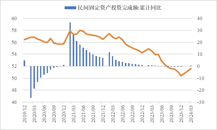 今年以來,我國經濟發(fā)展質效穩(wěn)步提升,投資結構不斷優(yōu)化,投資對發(fā)展的關鍵作用持續(xù)發(fā)揮。但受房地產投資低迷等因素影響,整體投資增速較上年同期有所放緩,民間投資活力仍待激發(fā)。下階段,需適時推進及用好中央預算內資金、萬億增發(fā)國債、地方政府專項債、超長期特別國債等政策工具,大規(guī)模推動制造業(yè)設備更新,持續(xù)激發(fā)民間投資活力,多措并舉消化存量房產,積極擴大有效益的投資,促進經濟平穩(wěn)健康發(fā)展。 一、一季度整體投資增速保持平穩(wěn) 2024年一季度,我國固定資產投資(不含農戶)同比增長4.5%,增速較上年同期下降0.6個百分點。建安工程、設備工器具購置分別增長4.6%、17.6%,設備工器具購置投資增速明顯高于建安工程投資增速,較2023年全年提高11個百分點,說明技術改造升級和設備更新市場潛力巨大,體現(xiàn)技術水平的設備工器具投入增長加快。 圖1 全國固定資產投資增速(%) 數(shù)據(jù)來源:國家統(tǒng)計局,Wind數(shù)據(jù)庫 (一)在資金支持和政策推動下,基礎設施投資支撐有力。今年2月底前,上年四季度增發(fā)的1萬億國債已全部下達,各地加快增發(fā)國債項目的開工建設,基礎設施投資穩(wěn)定增長。一季度基礎設施投資同比增長6.5%,較1—2月加快0.2個百分點,拉動全部投資增長1.4個百分點。其中,完成水利基礎設施投資1933億元,同比增長4.4%,為歷史同期最多;完成交通固定資產投資7205億元,同比增長13.3%;截至2月底全國能源重點項目完成投資約2680億元,同比增長17.2%。新型基礎設施建設穩(wěn)步發(fā)展,“雙千兆”網絡部署有序推進,累計建成5G基站364.7萬個,5G用戶普及率突破60%,千兆城市達到207個,梯次算力基礎設施架構加快構建。 表1 1—3月我國各行業(yè)固定資產投資情況 數(shù)據(jù)來源:國家統(tǒng)計局,Wind數(shù)據(jù)庫 (二)高技術產業(yè)投資繼續(xù)發(fā)揮引領帶動作用。一季度,制造業(yè)投資同比增長9.9%,拉動全部投資增長2.4個百分點。41個工業(yè)大類行業(yè)中,電子、汽車等37個行業(yè)增加值保持增長,增長面較去年擴大22個百分點。工業(yè)領域大規(guī)模設備更新和消費品以舊換新政策加快釋放市場空間,汽車銷量同比增長10.6%,家電類商品消費同比增長5.8%。3月,制造業(yè)采購經理指數(shù)(PMI)回升到景氣區(qū)間,達到了50.8%。 圖2 三大領域固定資產投資增速(累計同比,%) 數(shù)據(jù)來源:國家統(tǒng)計局,Wind數(shù)據(jù)庫 一季度高技術產業(yè)投資同比增長11.4%,其中高技術制造業(yè)和高技術服務業(yè)投資分別增長10.8%、12.7%。新興產業(yè)加快發(fā)展,3D打印設備、服務機器人產量分別增長40.6%、26.7%;創(chuàng)新成果不斷涌現(xiàn),300兆瓦級F級重型燃氣輪機首臺樣機總裝下線;人工智能與制造業(yè)深度融合,全國已建成近萬家數(shù)字化車間和智能工廠,已培育421家國家級智能制造示范工廠;生產性服務業(yè)發(fā)展提速,信息傳輸、軟件和信息技術服務業(yè)增加值增長13.7%。新興產業(yè)典型產品呈現(xiàn)較快增長勢頭,一季度太陽能電池增長20.1%,與光伏相關的多晶硅、單晶硅增速超過50%,新能源汽車產銷分別增長28.2%、31.8%。 圖3 高技術產業(yè)投資增速對比整體投資增速 (累計同比,%) 數(shù)據(jù)來源:國家統(tǒng)計局,Wind數(shù)據(jù)庫 (三)房地產投資仍然低迷,支持房地產穩(wěn)定發(fā)展政策效果逐漸顯現(xiàn)。一季度,全國房地產開發(fā)投資22082億元,同比下降9.5%。其中,住宅投資16585億元,下降10.5%。房地產開發(fā)投資占固定資產投資完成額的比重降至22.07%,較上年同期下降2.14個百分點。房屋施工面積、房屋新開工面積等先行指標均出現(xiàn)明顯下滑,分別同比下降11.1%、27.8%。3月,國房景氣指數(shù)為92.07,連續(xù)第四個月下降。一線城市二手住宅銷售價格環(huán)比下降0.7%,二、三線城市二手住宅銷售價格均環(huán)比下降0.5%,國內大中城市房價仍呈持續(xù)下降趨勢。 今年以來,各地加大了支持房地產穩(wěn)定發(fā)展的政策力度,包括降低貸款利率、放松限購、住房“以舊換新”等,一季度我國新建商品房銷售面積和銷售額比1—2月降幅分別收窄了1.1、1.7個百分點。去年中央金融工作會議后,中央及各地加大了保障性住房建設、“平急兩用”公共基礎設施建設、城中村改造等“三大工程”推進力度,積極構建房地產新發(fā)展模式。國家統(tǒng)計局數(shù)據(jù)顯示,“三大工程”拉動房地產投資0.6個百分點,政策舉措成效顯著。 (四)區(qū)域投資形勢整體向好,東北地區(qū)投資增速領先。2024年一季度,我國東北地區(qū)一批重大項目加快落地,投資大幅增長9.6%,較全國水平高了5.1個百分點;京津冀、長三角、粵港澳大灣區(qū)等動力源地區(qū)經濟較快增長,東部地區(qū)投資同比增長5.7%,較全國水平高了1.2個百分點;中西部地區(qū)產業(yè)加快轉型升級,投資分別增長4.1%、1.4%。 圖4 分地區(qū)固定資產投資增速(累計同比,%) 數(shù)據(jù)來源:國家統(tǒng)計局,Wind數(shù)據(jù)庫 2024年一季度,31個省份中有20個省投資增速高于全國水平,其中西藏、內蒙古、黑龍江、北京、新疆、甘肅等6省實現(xiàn)兩位數(shù)增長,江西、云南、廣西等3省投資出現(xiàn)負增長,分別同比下降1.1%、8.1%、20.4%。 表2 1—3月全國各省固