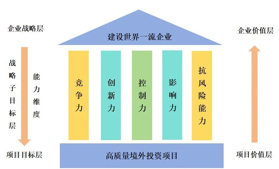 編者按:隨著“雙循環(huán)”戰(zhàn)略、“走出去”戰(zhàn)略和“一帶一路”倡議的深入推進(jìn)實施,對企業(yè)境外投資開展系統(tǒng)研究,探索如何更高質(zhì)量地開展境外投資,成為當(dāng)前一項重要和緊迫的任務(wù)。我國擁有堅韌完整的產(chǎn)業(yè)鏈、高效穩(wěn)定的社會治理和廣闊開放的消費(fèi)市場,有望擔(dān)當(dāng)全球經(jīng)濟(jì)治理的改革者、國際供應(yīng)鏈的樞紐站、跨國資本技術(shù)要素的集納方,以強(qiáng)大的兼容力、吸引力、整合力,為開拓新時代更高水平、更寬領(lǐng)域的國際共贏格局貢獻(xiàn)中國力量。本公眾號將企業(yè)境外投資研究成果以系列文章的形式陸續(xù)刊發(fā),第一至第五部分是關(guān)于全球與我國境外投資的情況分析,第六至第八部分從戰(zhàn)略引領(lǐng)、價值創(chuàng)造的視角,以中央企業(yè)為主體,著重探討通過構(gòu)建“戰(zhàn)略和價值”二維一體的境外投資模式,對境外投資決策進(jìn)行分析和研判,對境外投資項目進(jìn)行分類組合與資源配置,培育和壯大中央企業(yè)在特定的某個方面或多個方面可能存在的突出競爭優(yōu)勢。第九部分和第十部分將分別闡述戰(zhàn)略和價值評價的基本方法和“戰(zhàn)略和價值”二維一體境外投資高質(zhì)量發(fā)展模式的指標(biāo)體系構(gòu)建。本文是研究報告的第九部分,供業(yè)界同仁參考。 企業(yè)境外投資系列研究之九: 戰(zhàn)略和價值評價基本方法 楊凱越 本文針對中央企業(yè)的境外投資,構(gòu)建了從企業(yè)戰(zhàn)略到項目目標(biāo)、從項目價值到企業(yè)價值的投資模式和路徑,對企業(yè)層和項目層兩個層面進(jìn)行研究。從而幫助中央企業(yè)更好地理解其特點和優(yōu)勢,指導(dǎo)其境外投資決策和實施。其中,從企業(yè)到項目的研究意味著要從宏觀層面到微觀層面進(jìn)行分析。在企業(yè)戰(zhàn)略層面,中央企業(yè)的境外投資戰(zhàn)略應(yīng)該與國家戰(zhàn)略和企業(yè)發(fā)展戰(zhàn)略相一致,考慮國家利益和安全、企業(yè)長期發(fā)展戰(zhàn)略等因素。在項目層面,中央企業(yè)需要考慮投資目標(biāo)的選擇、投資模式的設(shè)計、風(fēng)險管理、項目執(zhí)行等方面的問題。從項目價值到企業(yè)價值的研究都要關(guān)注中央企業(yè)在境外投資過程中的價值創(chuàng)造。這同時涉及企業(yè)整體的戰(zhàn)略目標(biāo)與境外投資項目之間的契合度,境外投資項目的選擇、決策,境外投資項目群的構(gòu)建等問題。 圖1 建設(shè)世界一流企業(yè)與高質(zhì)量境外投資項目的戰(zhàn)略-價值關(guān)系圖 一、企業(yè)戰(zhàn)略層的評價 (一)企業(yè)戰(zhàn)略層的分解思路 1.企業(yè)戰(zhàn)略層分解的難點 (1)頂層戰(zhàn)略目標(biāo)可能流于形式 大部分中央企業(yè)都十分重視戰(zhàn)略的制定,一些中央企業(yè)委托咨詢單位協(xié)助其制定公司的戰(zhàn)略規(guī)劃,但在部分企業(yè)中,仍然存在制定好的頂層戰(zhàn)略,未能得到良好地貫徹和實施,戰(zhàn)略目標(biāo)停留在形式層面的情況。從高層、中層管理者到基層員工,對于制定戰(zhàn)略的背景以及政策了解程度不同,呈現(xiàn)出逐級減弱的態(tài)勢,因而公司管理層和基層員工對于戰(zhàn)略目標(biāo)的理解以及對于戰(zhàn)略目標(biāo)的執(zhí)行有著較大差異,同層級中隨著部門的差異化而差異化,隨著層級降低而降低,不能有效形成資源合力。 (2)戰(zhàn)略的模糊性特征可能較難項目化分解 一方面,戰(zhàn)略本身具有模糊特性,將模糊性的戰(zhàn)略定性定量化分解、模糊的戰(zhàn)略項目式分解,對科學(xué)性和系統(tǒng)性有較高的要求。另一方面,大部分中央企業(yè)機(jī)構(gòu)龐大,管理層級較多,境外投資項目往往僅屬于中央企業(yè)的某個獨(dú)立板塊,將企業(yè)戰(zhàn)略目標(biāo)和項目戰(zhàn)略目標(biāo)相匹配,通過項目指標(biāo)進(jìn)行戰(zhàn)略管理,可能存在項目戰(zhàn)略目標(biāo)不能被各層級員工全面理解和執(zhí)行的情況。 2.戰(zhàn)略分解的要點 (1)完成企業(yè)戰(zhàn)略目標(biāo)向境外投資項目戰(zhàn)略目標(biāo)的細(xì)分 戰(zhàn)略的執(zhí)行需要將模糊、長遠(yuǎn)的發(fā)展愿景、發(fā)展目標(biāo),轉(zhuǎn)變?yōu)榫哂锌刹僮餍缘碾A段性目標(biāo)和舉措。在實踐過程中,中央企業(yè)必須將已經(jīng)制定的長期發(fā)展目標(biāo)與短期的行動目標(biāo)、獨(dú)立的境外投資項目目標(biāo)、各層級與涉及個體的責(zé)任相統(tǒng)一相結(jié)合,將總體戰(zhàn)略細(xì)化落實到各個項目和各崗位員工的工作任務(wù)中。在戰(zhàn)略執(zhí)行過程中,要構(gòu)建較為全面、科學(xué)的戰(zhàn)略控制系統(tǒng)。針對戰(zhàn)略規(guī)劃,各層級單位及部門所承擔(dān)的目標(biāo)及具體任務(wù)需要設(shè)定清晰的指導(dǎo)和指標(biāo),對項目部和員工個人的細(xì)分任務(wù)落實情況對照考核,從而確保企業(yè)總體戰(zhàn)略得到系統(tǒng)性的落實。 (2)完成關(guān)鍵指標(biāo)的設(shè)置 在設(shè)計指標(biāo)權(quán)重時,應(yīng)考慮中央企業(yè)在不同階段的發(fā)展重點,以及其所處行業(yè)、性質(zhì)(保障類、商業(yè)類等),根據(jù)企業(yè)實際情況的變化而及時變更指標(