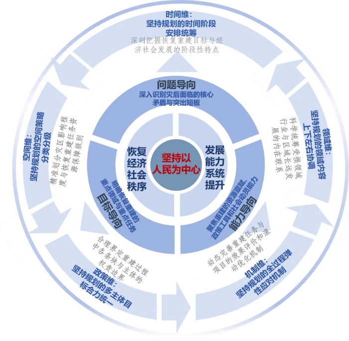 重大自然災(zāi)害災(zāi)后重建規(guī)劃編制 的方法論探析 索筠博 一、引言 我國(guó)是世界上遭受自然災(zāi)害最多的國(guó)家之一。統(tǒng)計(jì)數(shù)據(jù)顯示,2010年以來,全國(guó)因自然災(zāi)害造成的直接經(jīng)濟(jì)損失累計(jì)高達(dá)5.54萬億元,受災(zāi)人次累計(jì)超過31.03億,其中,青海玉樹7.1級(jí)地震、海河“23·7”流域性特大洪水以及西藏定日縣6.8級(jí)地震等重大自然災(zāi)害共啟動(dòng)國(guó)家級(jí)二級(jí)及以上應(yīng)急響應(yīng)十余次,行業(yè)系統(tǒng)級(jí)響應(yīng)更是不計(jì)其數(shù)。 近年來,全球自然災(zāi)害呈多發(fā)態(tài)勢(shì),我國(guó)極端天氣氣候事件及其次生衍生災(zāi)害頻次明顯增加,破壞性地震仍處于頻發(fā)多發(fā)期。趨頻、趨強(qiáng)、趨耦合的自然災(zāi)害態(tài)勢(shì),疊加高度集中的人口和產(chǎn)業(yè)分布,給人民生命財(cái)產(chǎn)安全和社會(huì)經(jīng)濟(jì)穩(wěn)定運(yùn)行帶來了系統(tǒng)性風(fēng)險(xiǎn)。黨中央、國(guó)務(wù)院高度重視防災(zāi)減災(zāi)救災(zāi)工作,習(xí)近平總書記多次在不同場(chǎng)合就相關(guān)工作發(fā)表重要講話或作出重要指示。2023年,中央財(cái)政增發(fā)1萬億元特別國(guó)債,專項(xiàng)用于支持災(zāi)后恢復(fù)重建和提升防災(zāi)減災(zāi)能力。 在重大自然災(zāi)害的災(zāi)后治理過程中,恢復(fù)重建是推動(dòng)恢復(fù)秩序、穩(wěn)定社會(huì)、實(shí)現(xiàn)受災(zāi)區(qū)域高質(zhì)量發(fā)展的重要環(huán)節(jié)。本文立足于重大自然災(zāi)害災(zāi)后恢復(fù)重建實(shí)際,從方法論的角度,探討對(duì)于災(zāi)后恢復(fù)重建規(guī)劃編制的認(rèn)識(shí)、思考邏輯與統(tǒng)籌方法,提出災(zāi)后恢復(fù)重建規(guī)劃編制工作中的一個(gè)中心、兩個(gè)目標(biāo)、三個(gè)邏輯導(dǎo)向和五個(gè)統(tǒng)籌維度,力圖為提升災(zāi)后恢復(fù)重建規(guī)劃的專業(yè)性、科學(xué)性與可實(shí)施性提供參考。 圖1 海河"23·7"流域性特大洪水中的霸州市武將臺(tái)村 二、災(zāi)后恢復(fù)重建工作的特點(diǎn) 災(zāi)后恢復(fù)重建規(guī)劃是整個(gè)恢復(fù)重建工作的“藍(lán)圖”,規(guī)劃編制時(shí)間緊迫、任務(wù)繁重、系統(tǒng)復(fù)雜,高質(zhì)量編制規(guī)劃,需要深刻把握重建工作的“急、多、難、高、緊”五重特性。 一是時(shí)間緊、任務(wù)重。需要在短時(shí)間內(nèi)完成大量恢復(fù)重建任務(wù),保障群眾基本生活要求,時(shí)間窗口有限、推進(jìn)節(jié)奏快; 二是領(lǐng)域多、系統(tǒng)關(guān)聯(lián)性強(qiáng)。不僅包括住房、交通、水利、電力等基礎(chǔ)設(shè)施,還涉及教育、醫(yī)療、生態(tài)、產(chǎn)業(yè)、社會(huì)治理等多個(gè)行業(yè)領(lǐng)域,涵蓋城鄉(xiāng)多個(gè)空間單元,重建任務(wù)交織疊加,協(xié)調(diào)難度大; 三是情勢(shì)復(fù)雜、動(dòng)態(tài)演變快。災(zāi)區(qū)災(zāi)情成因多樣、影響范圍廣泛、受災(zāi)程度差異顯著。同時(shí)災(zāi)區(qū)情況因次生災(zāi)害、資源調(diào)整、環(huán)境變化、群眾訴求等諸多不確定因素不斷調(diào)整演化,動(dòng)態(tài)性強(qiáng); 四是社會(huì)關(guān)注度高、群眾期盼強(qiáng)烈。恢復(fù)重建直接關(guān)系人民群眾切身利益,公眾、媒體和各級(jí)政府高度關(guān)注; 五是資源有限、問題多元。受災(zāi)區(qū)域發(fā)展基礎(chǔ)、資源條件、治理能力差異顯著,恢復(fù)需求和優(yōu)先順序各不相同。面對(duì)廣泛恢復(fù)需求的同時(shí),資金、人力、土地等各類資源保障能力存在現(xiàn)實(shí)約束,資源供需矛盾突出。 圖2 災(zāi)后恢復(fù)重建規(guī)劃編制方法要點(diǎn)示意 三、災(zāi)后恢復(fù)重建規(guī)劃根本遵循 “恢復(fù)重建是一項(xiàng)復(fù)雜的系統(tǒng)工程,要科學(xué)規(guī)劃,精心組織實(shí)施?!绷?xí)近平總書記多次關(guān)于災(zāi)后恢復(fù)重建工作的講話精神,集中體現(xiàn)了以人民為中心的發(fā)展思想和系統(tǒng)治理、科學(xué)重建的理念。要求災(zāi)后恢復(fù)重建工作必須始終堅(jiān)持以人民為中心,堅(jiān)持系統(tǒng)觀念,堅(jiān)持求真務(wù)實(shí)、科學(xué)規(guī)劃、合理布局、分步實(shí)施,準(zhǔn)確把握災(zāi)區(qū)實(shí)際和發(fā)展?jié)摿Γ龅揭虻刂埔?、突出重點(diǎn)、務(wù)實(shí)可行。 (一)規(guī)劃的一個(gè)基本要求:堅(jiān)持以人民為中心 災(zāi)后恢復(fù)重建規(guī)劃編制必須牢固樹立以人民為中心的發(fā)展思想。習(xí)近平總書記強(qiáng)調(diào):“堅(jiān)持人民至上、生命至上”“要把保障人民群眾生命財(cái)產(chǎn)安全放在第一位,把群眾安危冷暖放在心上”。堅(jiān)持以人民為中心,要求從全局出發(fā)科學(xué)統(tǒng)籌群眾利益、社會(huì)穩(wěn)定與發(fā)展安全,把切實(shí)解決群眾急難愁盼的問題,滿足人民群眾對(duì)安全生活、美好生活的需求作為衡量重建成效的根本標(biāo)準(zhǔn)。無論是恢復(fù)基本秩序,還是推動(dòng)重建轉(zhuǎn)型升級(jí),都需要牢牢把握這一基本要求,確保災(zāi)后重建成為凝聚人心、改善民生、促進(jìn)發(fā)展的有力抓手。 (二)規(guī)劃的兩個(gè)