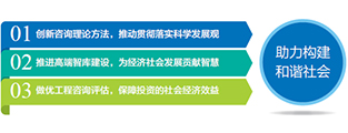在國家全面建設(shè)小康社會的進(jìn)程中積極貢獻(xiàn)我們的力量,在國家經(jīng)濟(jì)社會發(fā)展戰(zhàn)略的制定和實(shí)施中不斷奉獻(xiàn)我們的智慧,在國家投資決策上努力提供科學(xué)的依據(jù),以凝聚思想、優(yōu)質(zhì)高效的咨詢成果助力社會民生事業(yè),用心做好服務(wù),爭做工程咨詢行業(yè)的優(yōu)秀企業(yè)公民。 |